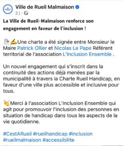 À l’approche des élections municipales de 2026, notre association se mobilise activement partout en France pour porter une ambition claire : faire de l’inclusion une priorité municipale. Sur le terrain, nous rencontrons les candidates et candidats de toutes sensibilités républicaines afin de leur présenter notre Charte pour une commune inclusive.