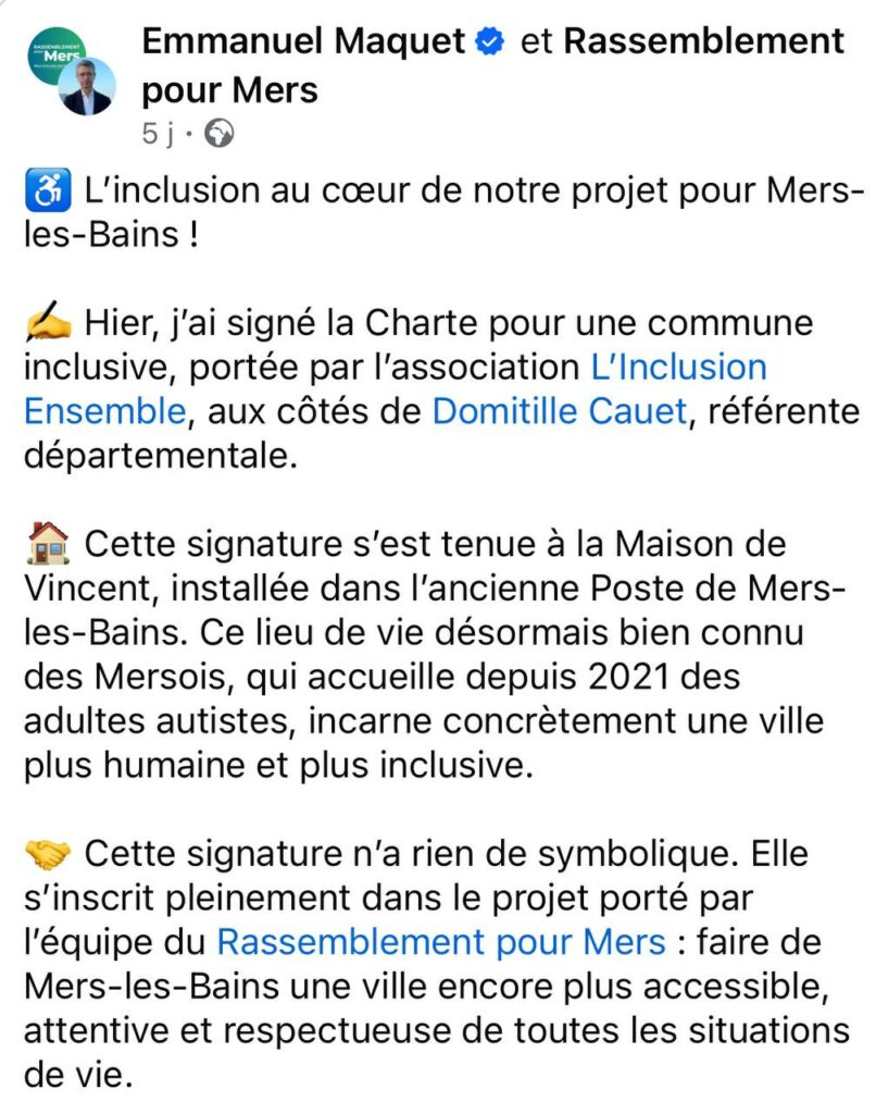 Cette charte pour une commune inclusive servira de guide à l’action municipale future, en concertation avec les acteurs locaux.